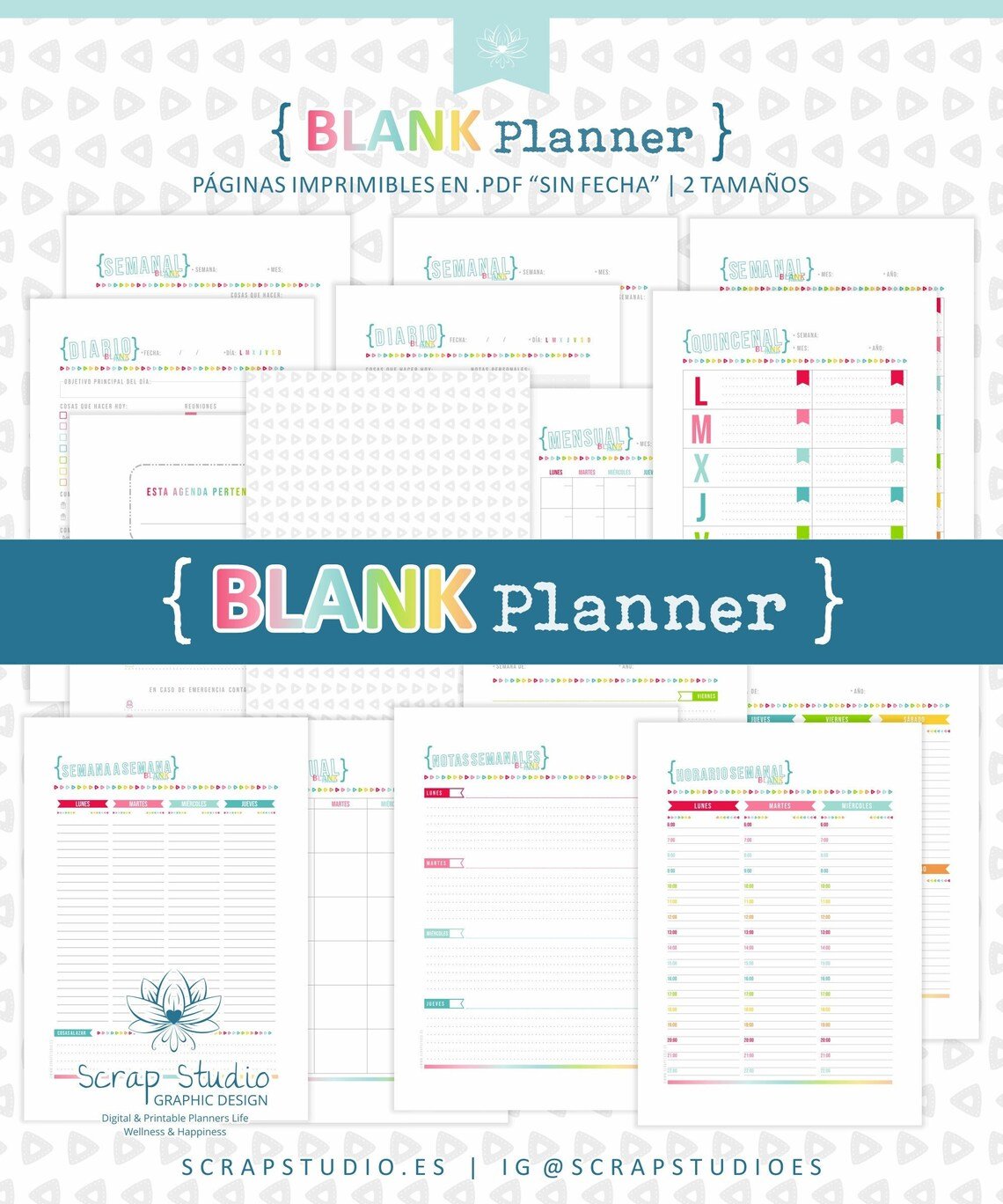 Este planner está compuesto por 16 páginas diseñadas para organización flexible. La idea es que puedas construir tu propio sistema de planificación a partir de ellas.