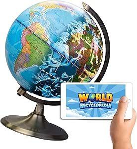 Si tienes hijos más pequeños que aún no pueden leer nombres de ubicaciones, también hay muchos modelos interactivos excelentes, como este Oregon Scientific Smart Globe con 19 juegos y un bolígrafo interactivo que permite a los niños tocar diferentes puntos en el mapa y escuchar datos sobre: