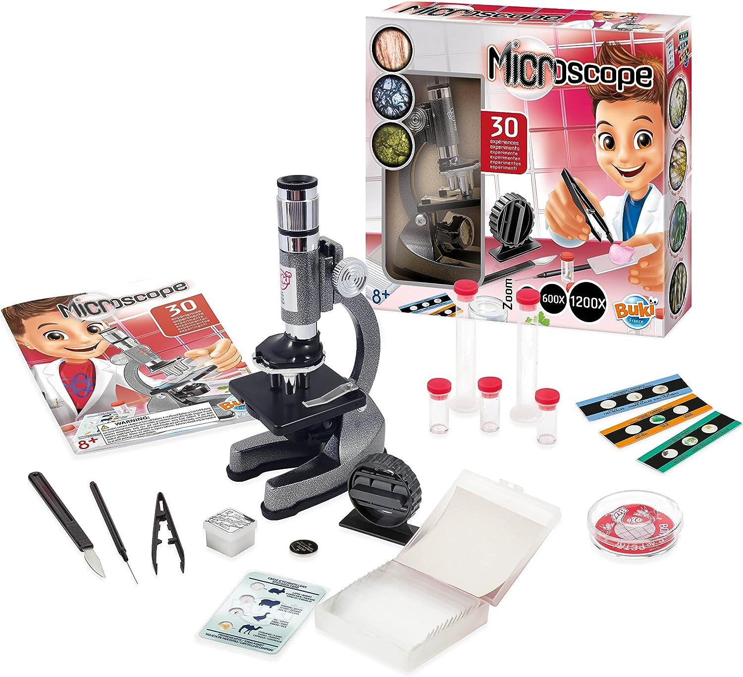 Se divertirán usando el microscopio para examinar todo tipo de cosas interesantes de su entorno, incluido su propio cabello, saliva, hojas y otras cosas.