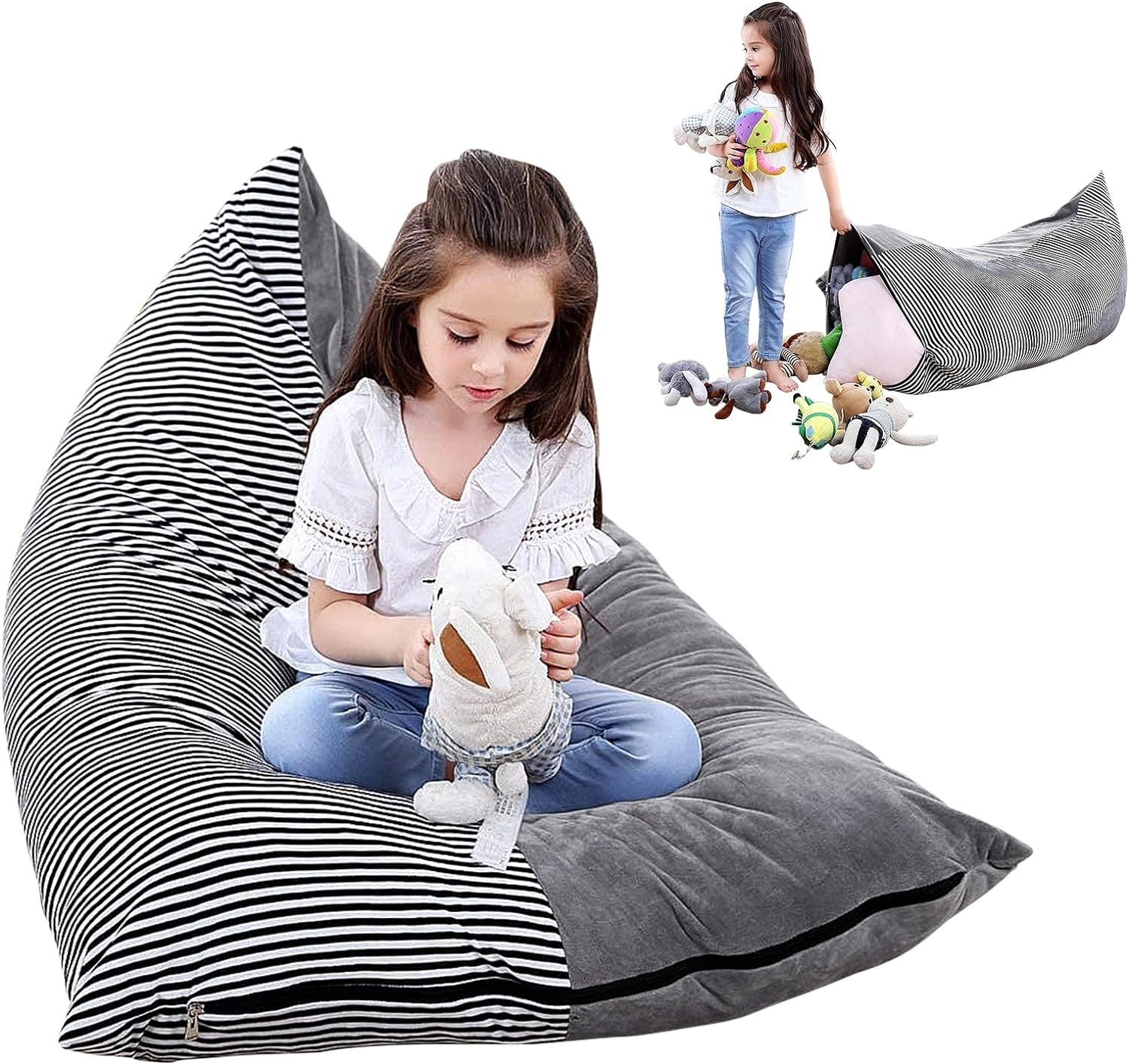 Pero un puff también es un excelente regalo. ¡Este puff también sirve como unidad de almacenamiento de peluches y tiene reseñas de 4.7/5 estrellas!